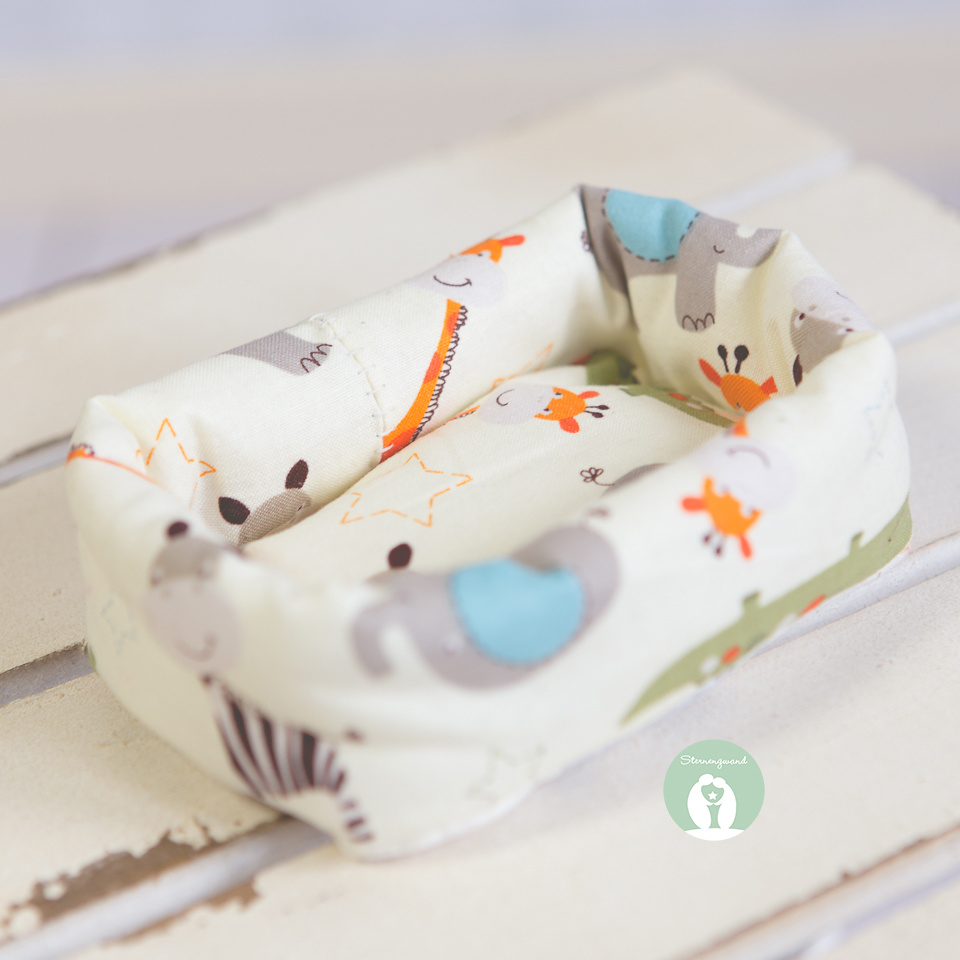 - Die Farben sollten freundlich sein, hell und gerne geschlechtsneutral. Wir freuen uns über unifarbene Stoffe, mit denen wir die gemusterten Stoffe gut kombinieren können